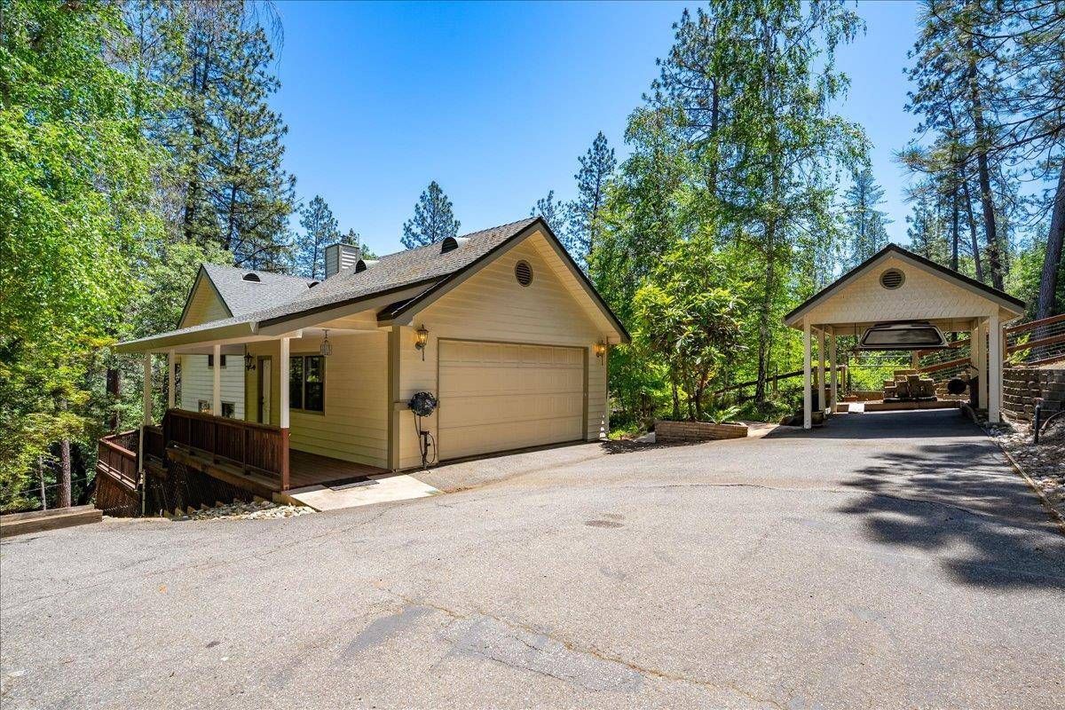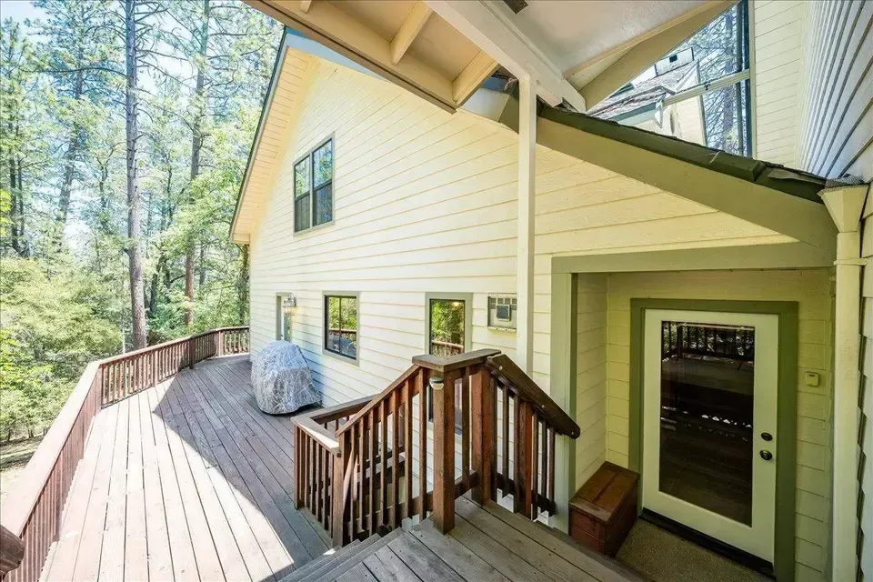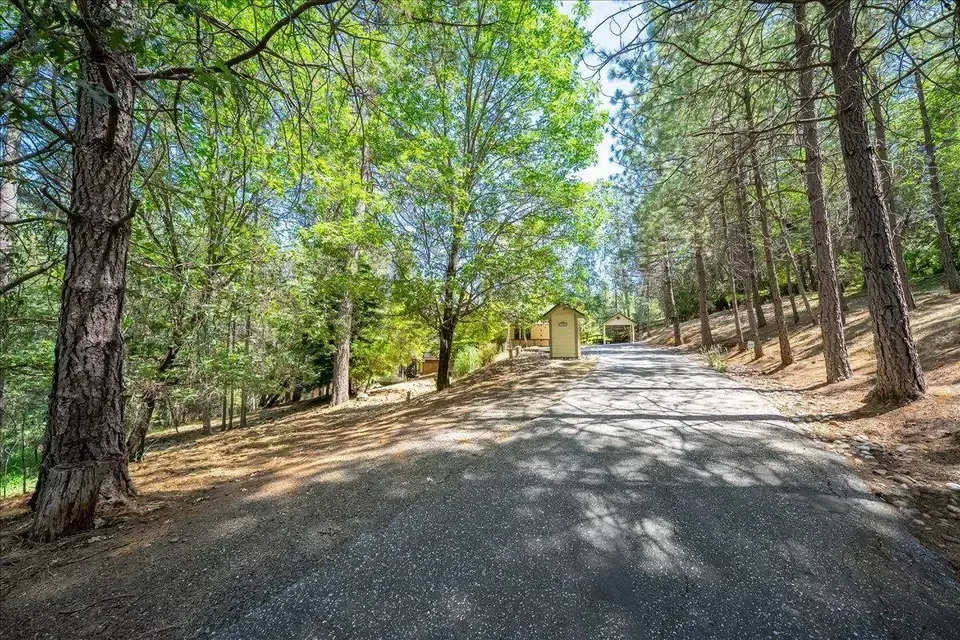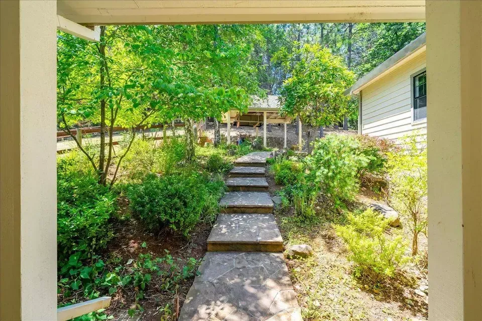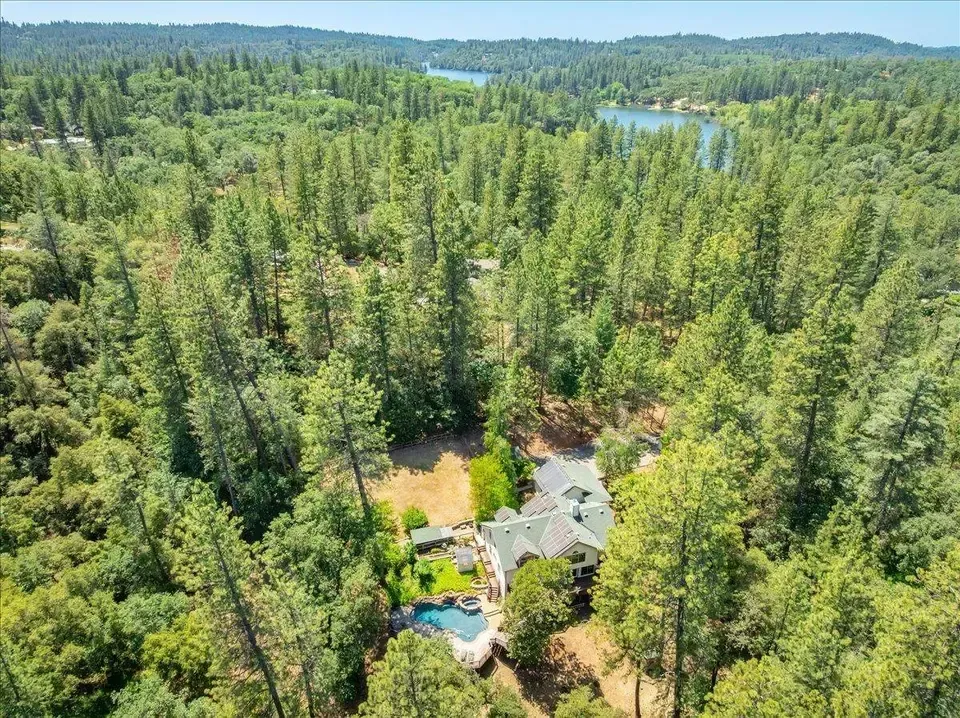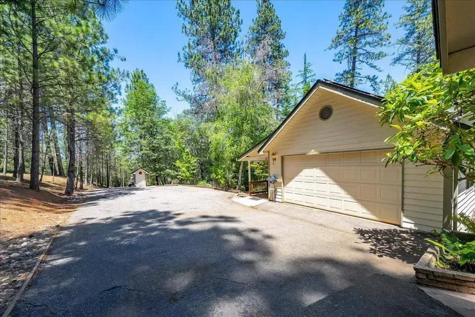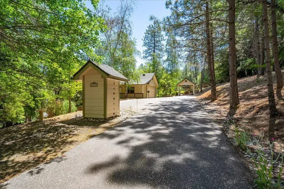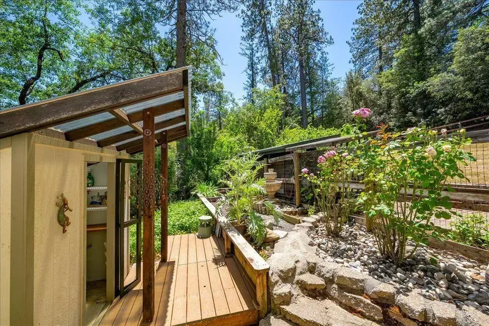 Spacious 4-bed, 4-bath home on 2.5 acres in peaceful Meadow Vista. The Main Floor features a dramatic entry to the living room with Cathedral Ceilings and a wood-burning fireplace, along with a Sunroom and a nicely appointed kitchen. Twin bedrooms include Walk-In Closets and share a Jack & Jill bath. A large laundry room and a spacious pantry/mud room provide Extra Storage and everyday convenience. Upstairs features a cheerful primary en suite, office or 4th bedroom with cedar walls and accents, and another full bathroom. A loft with a theater screen and wet bar - perfect for movie nights rounds out the upper level. Outside, enjoy a Wraparound Deck, Built-In Pool and Spa, Koi Pond,Fenced Garden with Potting Shed, and a separate enclosed area ideal for pets or play. A 2-Car Garage, Covered Carport, Paved Driveway, and expansive under-house Workshop area offer ideal spaces for hobbies, tools, and seasonal items. OWNED SOLAR significantly Reduces Utility Costs and Boosts Energy Efficiency. A Covered Front Porch completes the charm and versatility of this Private hilltop property.