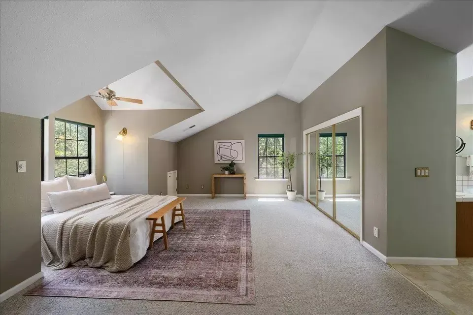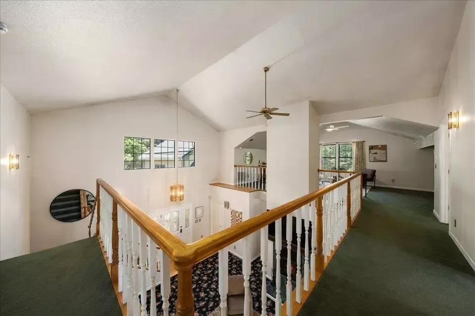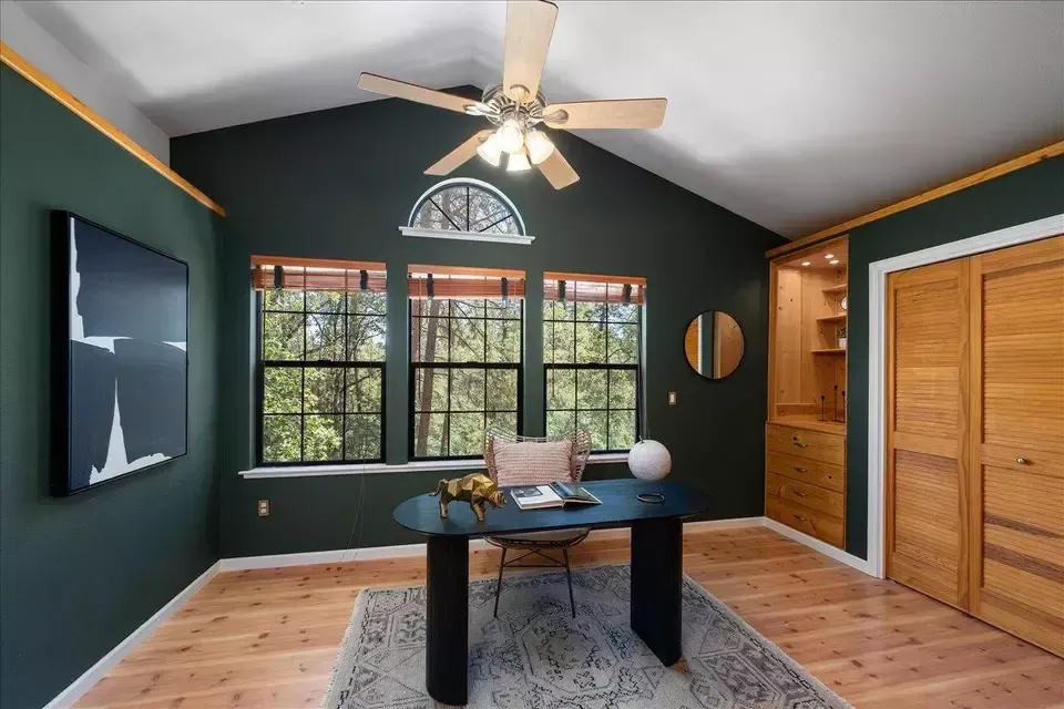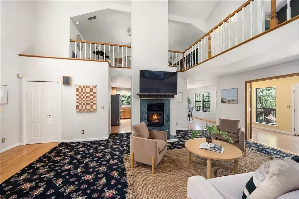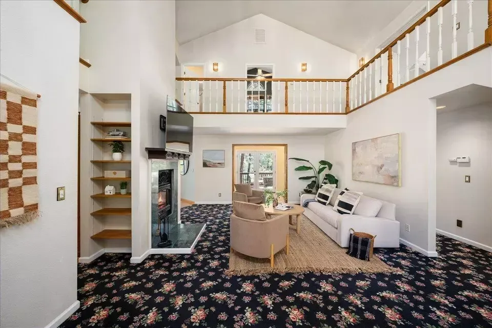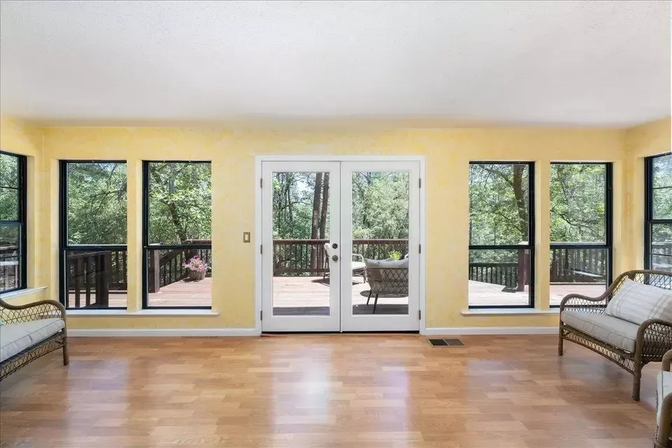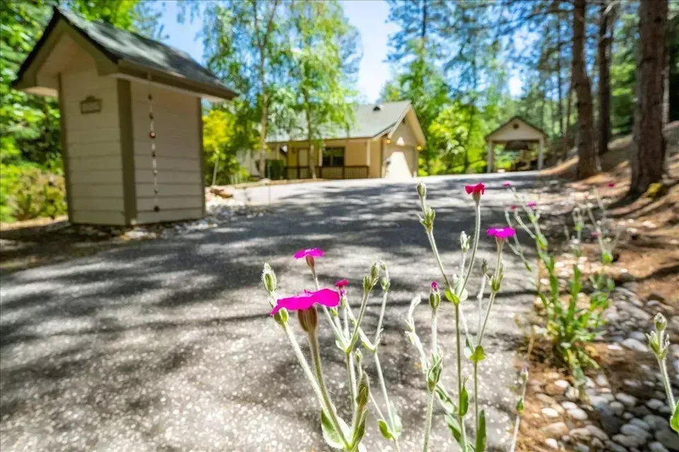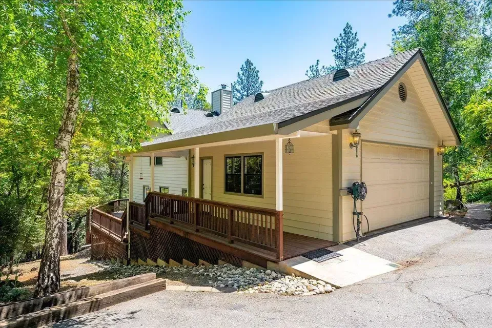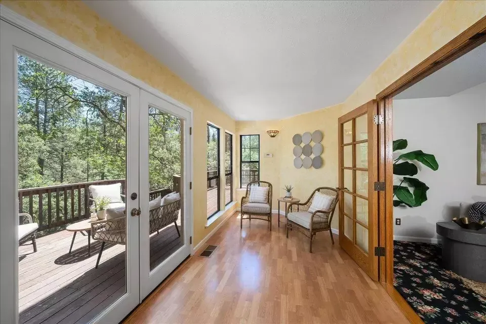 Spacious 4-bed, 4-bath home on 2.5 acres in peaceful Meadow Vista. The Main Floor features a dramatic entry to the living room with Cathedral Ceilings and a wood-burning fireplace, along with a Sunroom and a nicely appointed kitchen. Twin bedrooms include Walk-In Closets and share a Jack & Jill bath. A large laundry room and a spacious pantry/mud room provide Extra Storage and everyday convenience. Upstairs features a cheerful primary en suite, office or 4th bedroom with cedar walls and accents, and another full bathroom. A loft with a theater screen and wet bar - perfect for movie nights rounds out the upper level. Outside, enjoy a Wraparound Deck, Built-In Pool and Spa, Koi Pond,Fenced Garden with Potting Shed, and a separate enclosed area ideal for pets or play. A 2-Car Garage, Covered Carport, Paved Driveway, and expansive under-house Workshop area offer ideal spaces for hobbies, tools, and seasonal items. OWNED SOLAR significantly Reduces Utility Costs and Boosts Energy Efficiency. A Covered Front Porch completes the charm and versatility of this Private hilltop property.