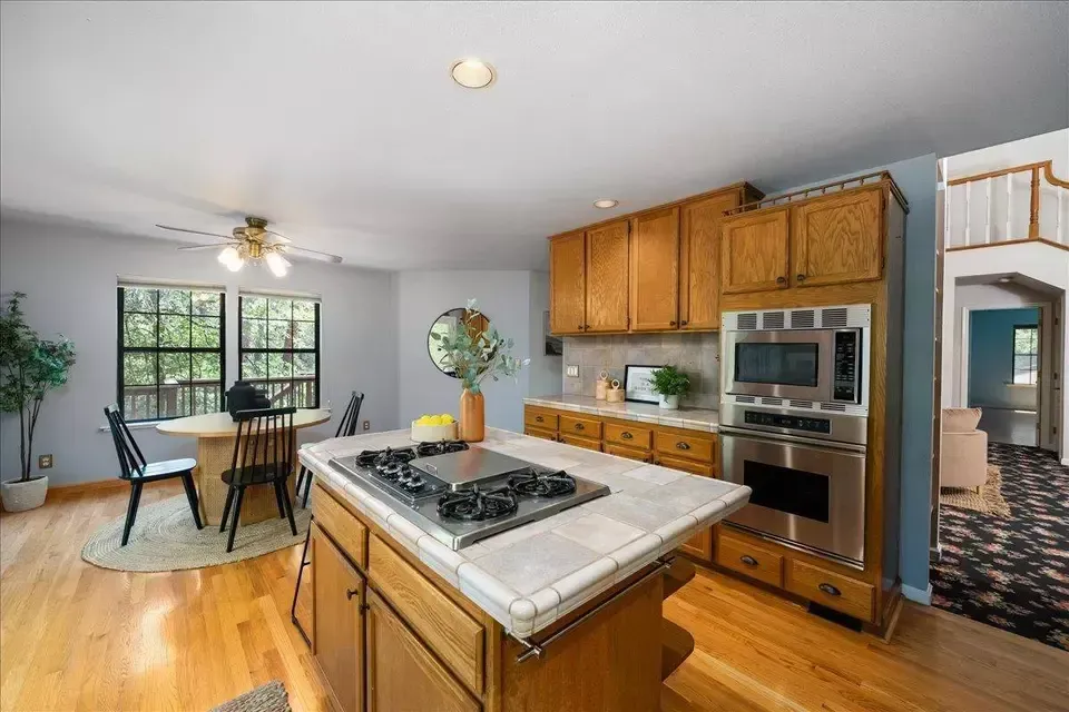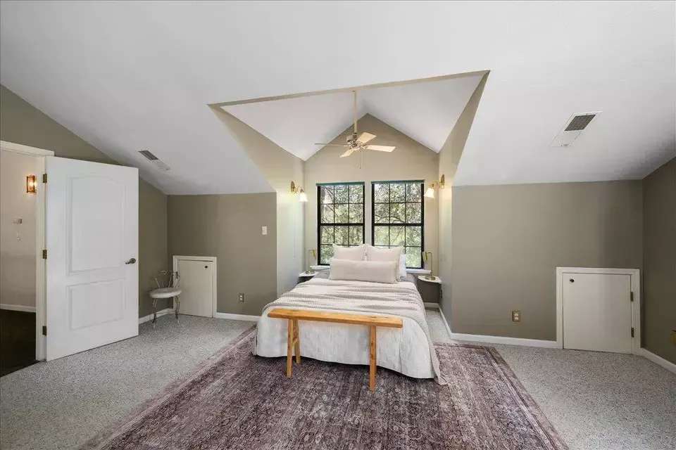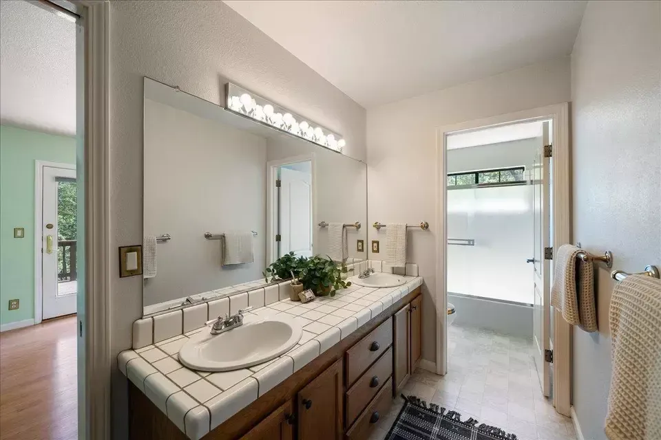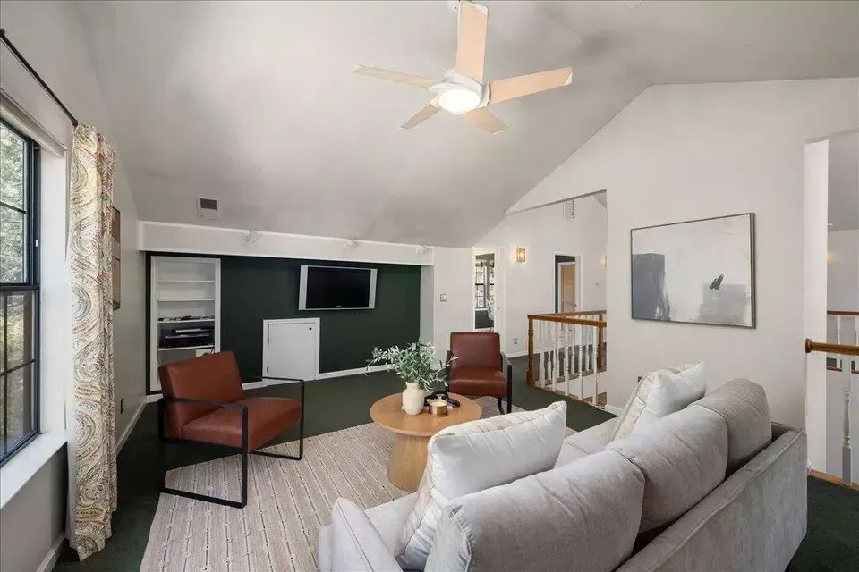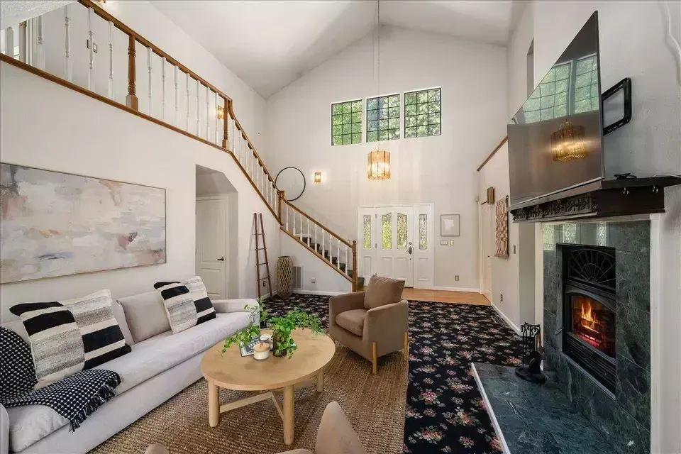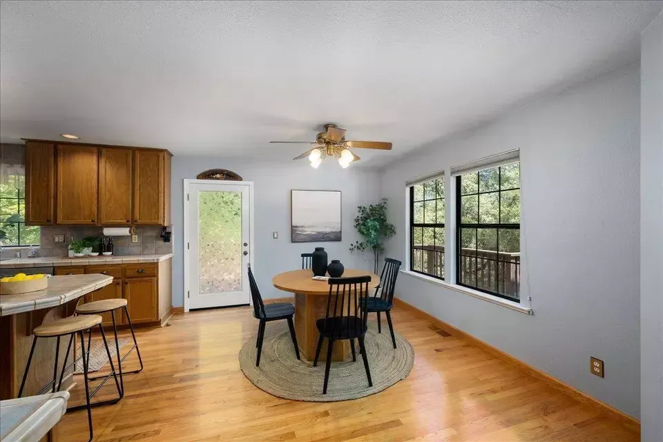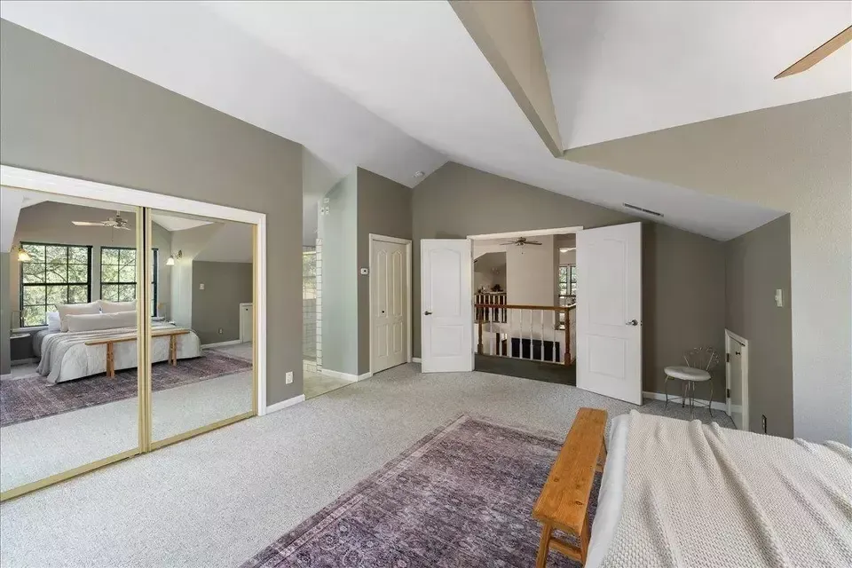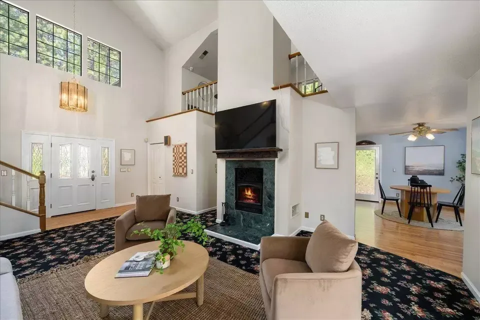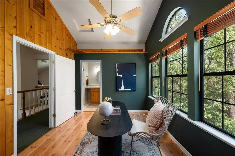 Spacious 4-bed, 4-bath home on 2.5 acres in peaceful Meadow Vista. The Main Floor features a dramatic entry to the living room with Cathedral Ceilings and a wood-burning fireplace, along with a Sunroom and a nicely appointed kitchen. Twin bedrooms include Walk-In Closets and share a Jack & Jill bath. A large laundry room and a spacious pantry/mud room provide Extra Storage and everyday convenience. Upstairs features a cheerful primary en suite, office or 4th bedroom with cedar walls and accents, and another full bathroom. A loft with a theater screen and wet bar - perfect for movie nights rounds out the upper level. Outside, enjoy a Wraparound Deck, Built-In Pool and Spa, Koi Pond,Fenced Garden with Potting Shed, and a separate enclosed area ideal for pets or play. A 2-Car Garage, Covered Carport, Paved Driveway, and expansive under-house Workshop area offer ideal spaces for hobbies, tools, and seasonal items. OWNED SOLAR significantly Reduces Utility Costs and Boosts Energy Efficiency. A Covered Front Porch completes the charm and versatility of this Private hilltop property.