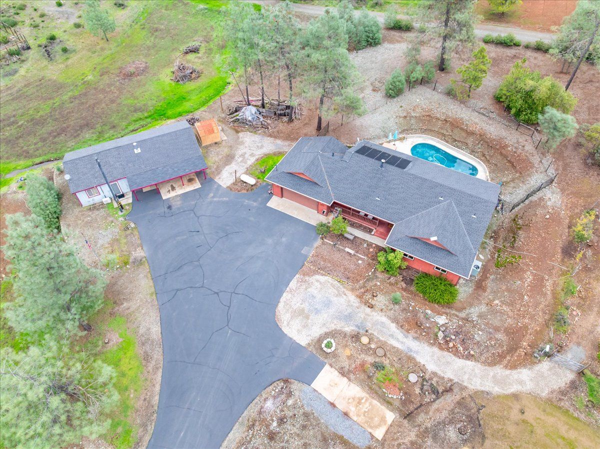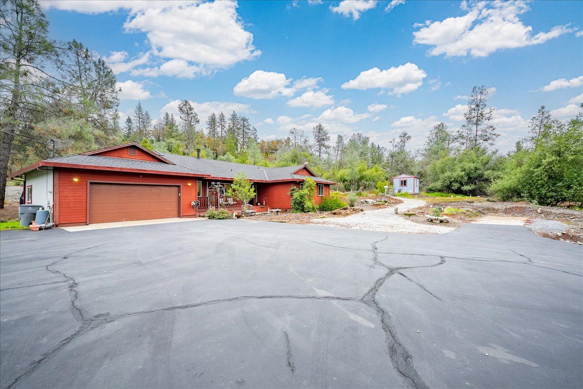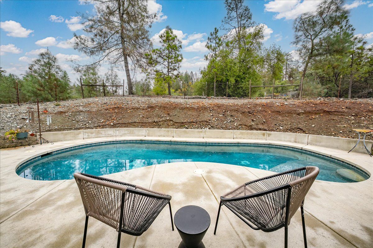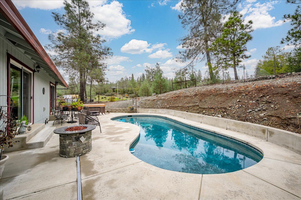 Cozy and Comfortable Single-Story home on 3 acres in the tranquil Sierra foothills Enjoy outdoor living with a Built-In Pool, Personal Spa, Cement Patio Surround, and an inviting Firepit - a great setup for relaxing or entertaining. Inside, you'll find updated bathrooms, a charming kitchen, and a large family room overlooking the pool. A versatile Second Detached Garage with a stand-alone woodstove and an Attached Office/Craft Room featuring its own Mini-Split heating and air is ideal for hobbyists or small business use. Bring all the Toys - the Paved Driveway provides tons of parking, including space for RVs, boats, and equipment. A Large Fenced Garden includes raised beds and a quaint Potting Shed with electricity. This wide-open usable land allows the perfect space for work, play, or storage. Welcome Home!