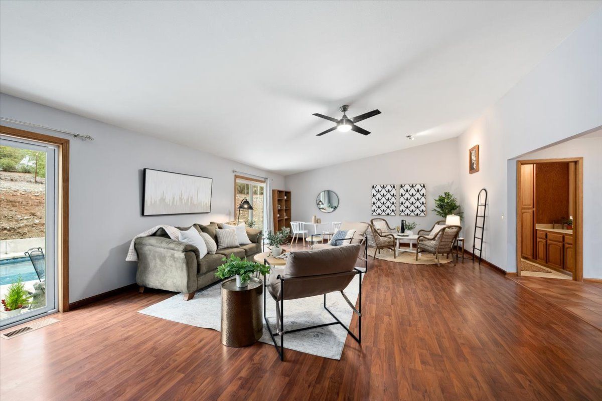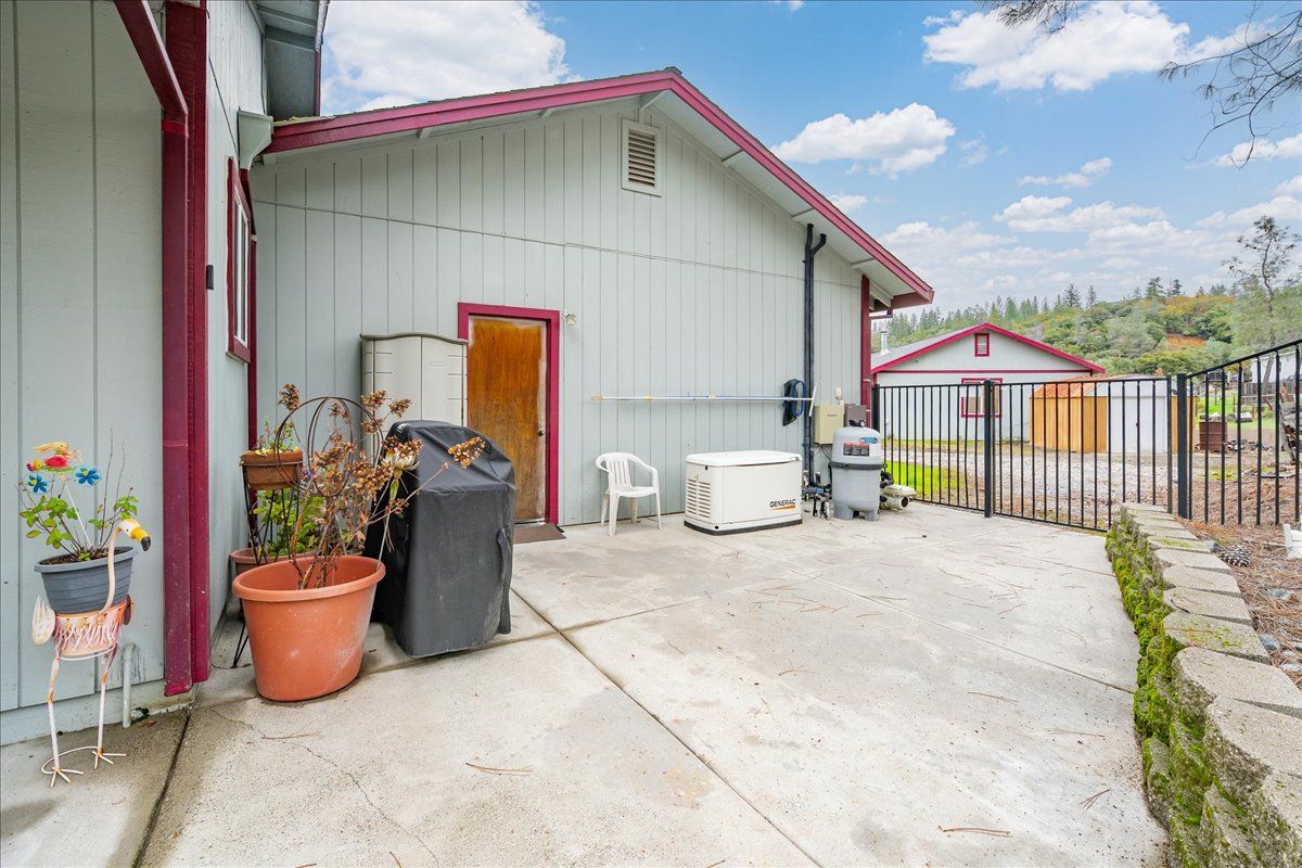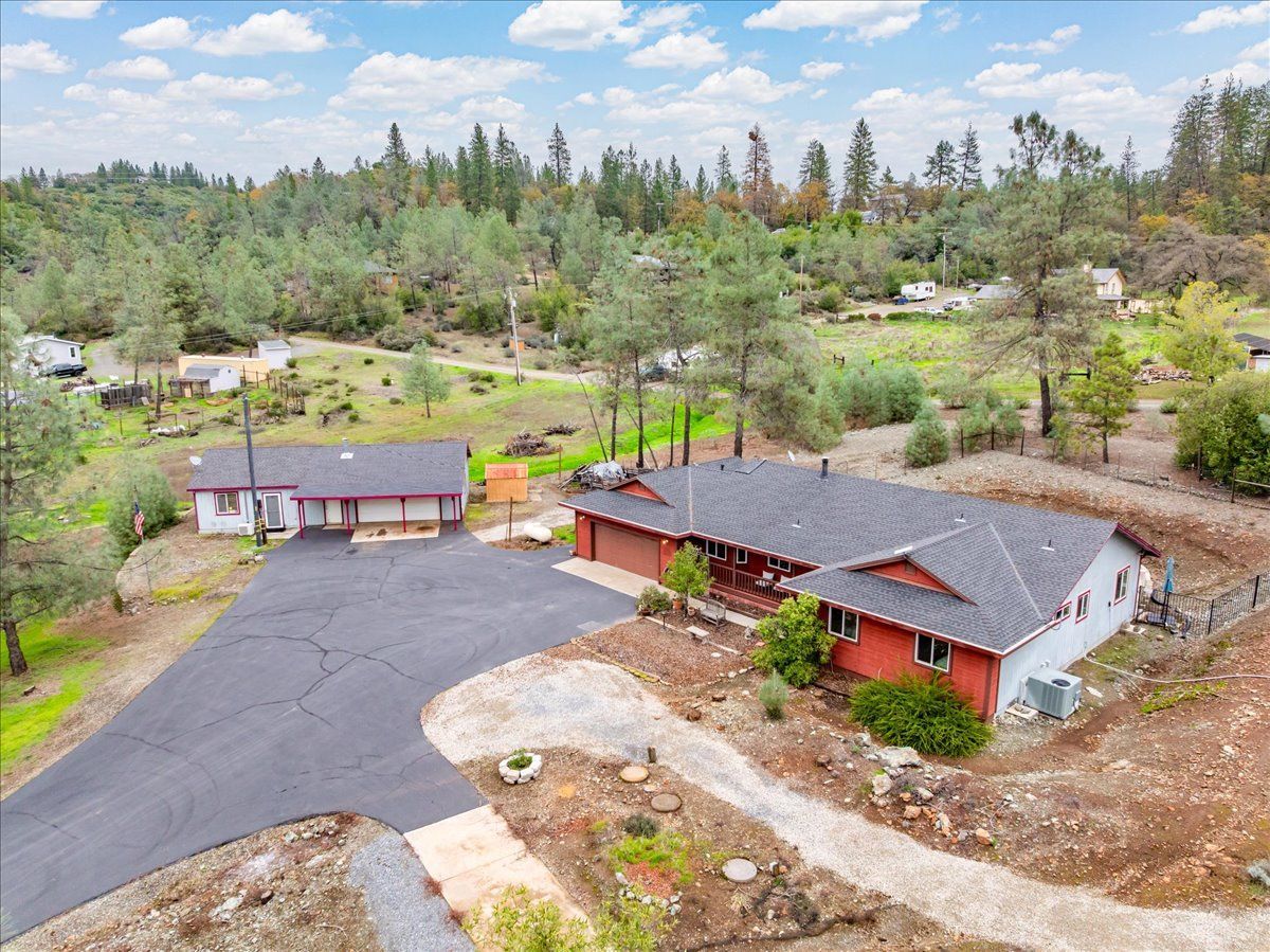 Cozy and Comfortable Single-Story home on 3 acres in the tranquil Sierra foothills Enjoy outdoor living with a Built-In Pool, Personal Spa, Cement Patio Surround, and an inviting Firepit - a great setup for relaxing or entertaining. Inside, you'll find updated bathrooms, a charming kitchen, and a large family room overlooking the pool. A versatile Second Detached Garage with a stand-alone woodstove and an Attached Office/Craft Room featuring its own Mini-Split heating and air is ideal for hobbyists or small business use. Bring all the Toys - the Paved Driveway provides tons of parking, including space for RVs, boats, and equipment. A Large Fenced Garden includes raised beds and a quaint Potting Shed with electricity. This wide-open usable land allows the perfect space for work, play, or storage. Welcome Home!