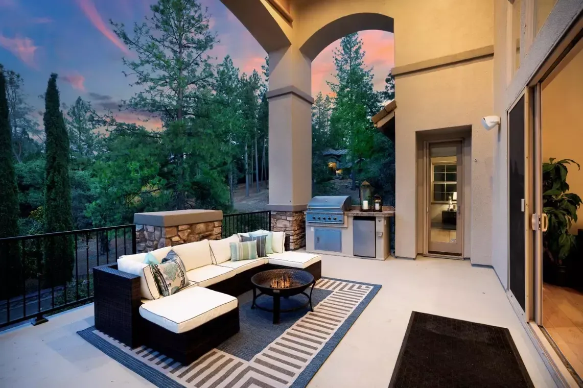 Elegant Entertainer's Dream Home at Winchester in beautiful Meadow Vista - ideal for celebrations, relaxation, and staycations. All your people will want to gather here! The impressive outdoor oasis features a pergola-covered kitchen with heaters, fans, kegerator, fridge/freezer, bar seating, and extensive patio surround for multiple entertaining areas. Enjoy the built-in heated pool with beach landing, spa, and outdoor fireplace. While the entire yard is beautifully landscaped, the backyard also offers a sports court, putting green, and direct access to the scenic Winchester Loop for hiking. Inside, a 2021 remodel boasts main-floor living, European white oak floors, a grand kitchen with an oversized quartz slab island, vast counter and cabinet space, and covered patio with built-in BBQ off the great room. The primary bedroom includes a custom wardrobe closet and a spa-like bathroom with heated floors, soaking tub, and walk-in closet. The upper level features a media & home theater room and 3 en suite bedrooms, while the finished basement provides extensive storage. A 3-car garage offers epoxy floors, custom cabinets, Tesla charging station. With its perfect blend of sophistication, comfort, and entertainment spaces, this is the ultimate retreat to call home!